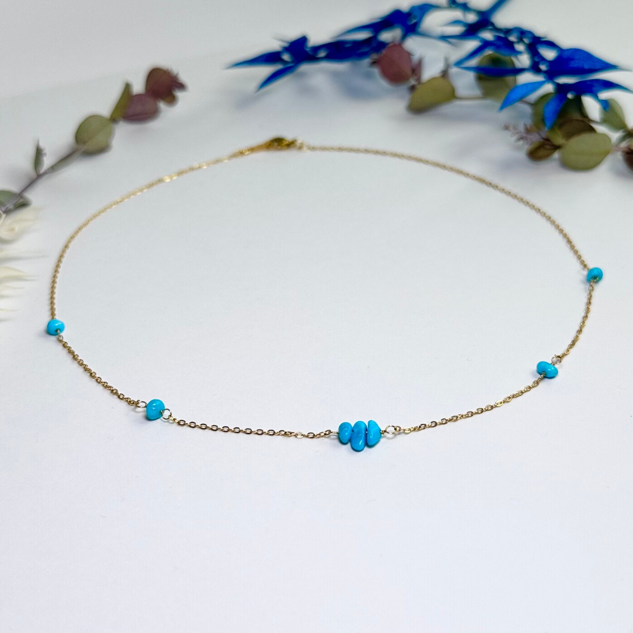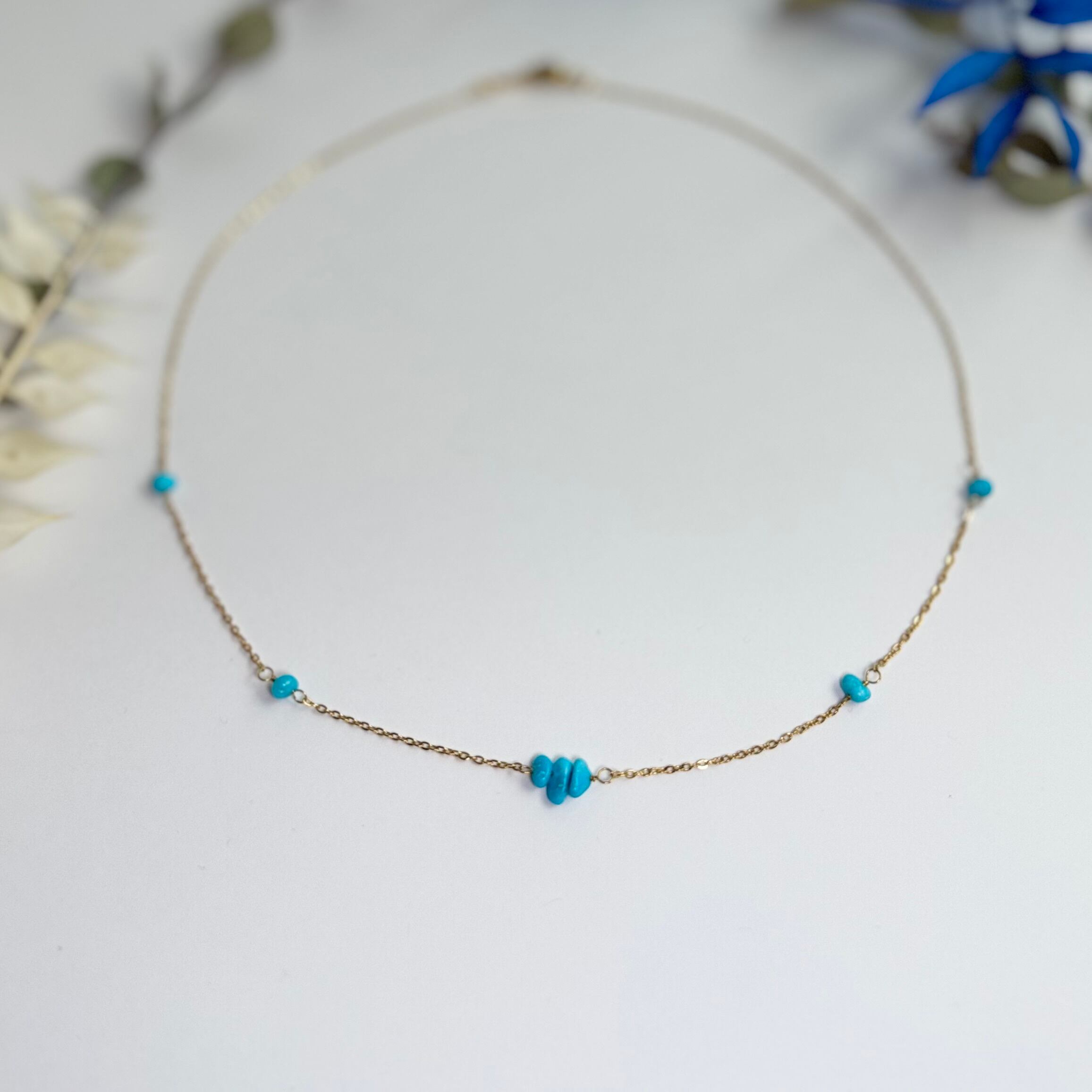 ⊹⊹ ࣪ターコイズの頂点!希少なスリーピングビューティーターコイズを使ったのネックレス˖ さりげなく鎖骨周りに散らしたターコイズが首周りを飾って綺麗です。