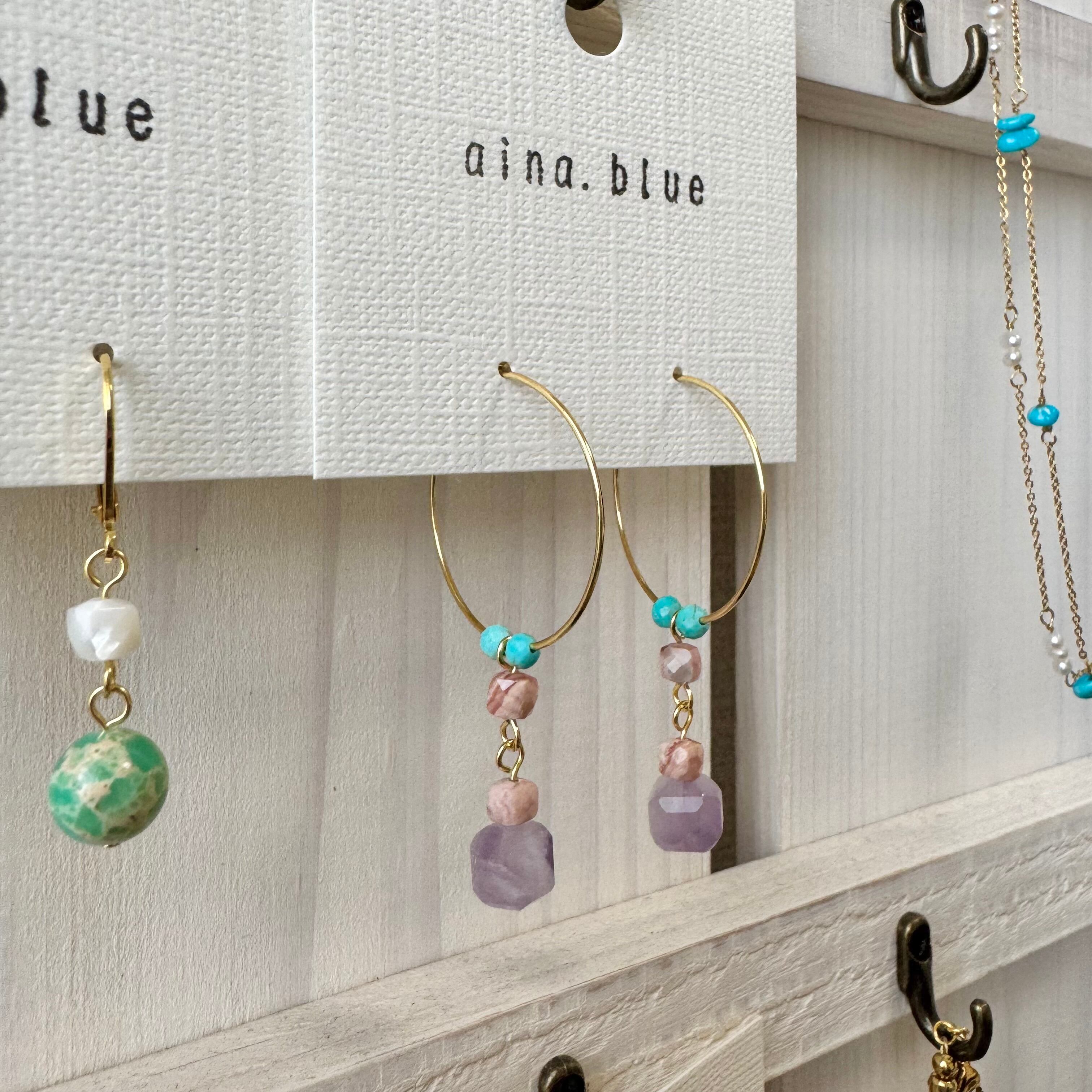 アメジストとインカローズ ターコイズのフープピアス