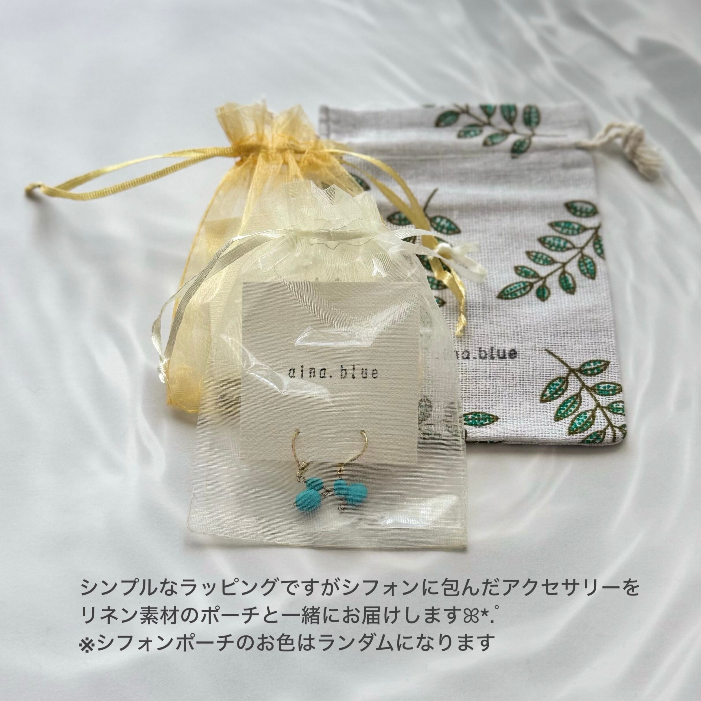 シンプルなラッピングで、シフォンに包まれたアクセサリーをリネン素材のポーチと共にお届けしますꕤ*.゚