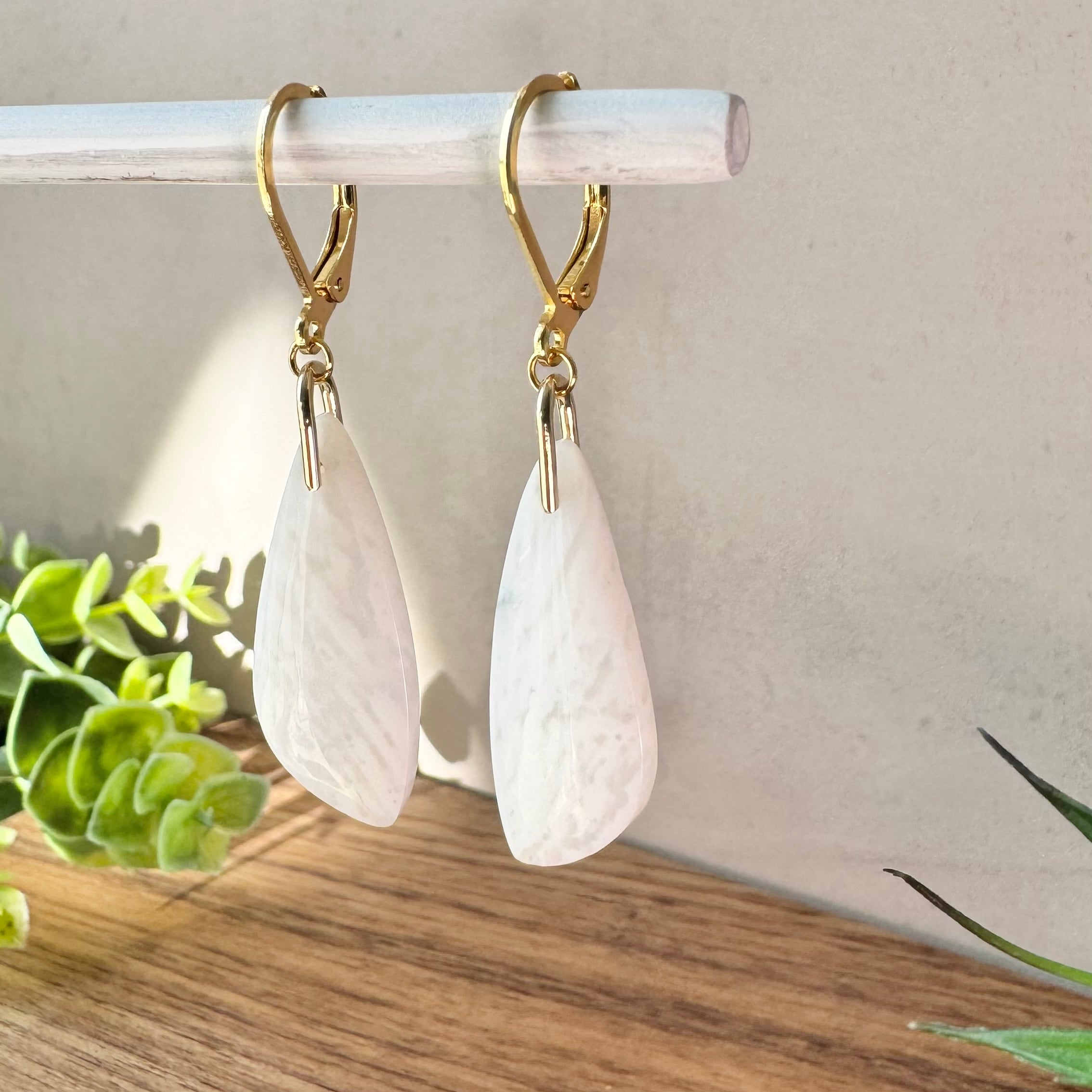⊹ 1点もの⊹インドネシア産の天然石ピアス*ホワイトアゲート
