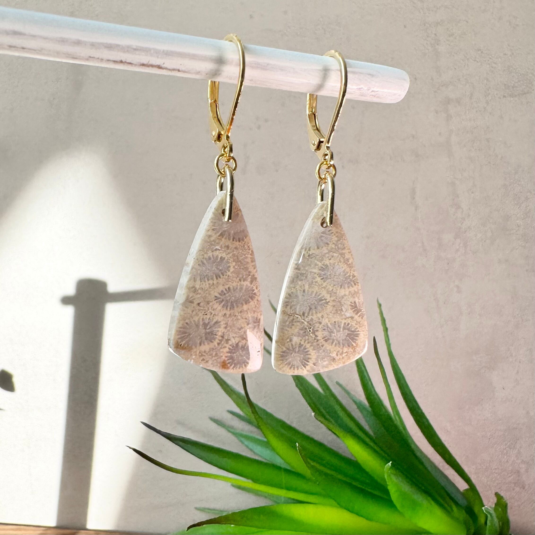 ⊹ 1点もの⊹インドネシア産の天然石ピアス*フォシルコーラル