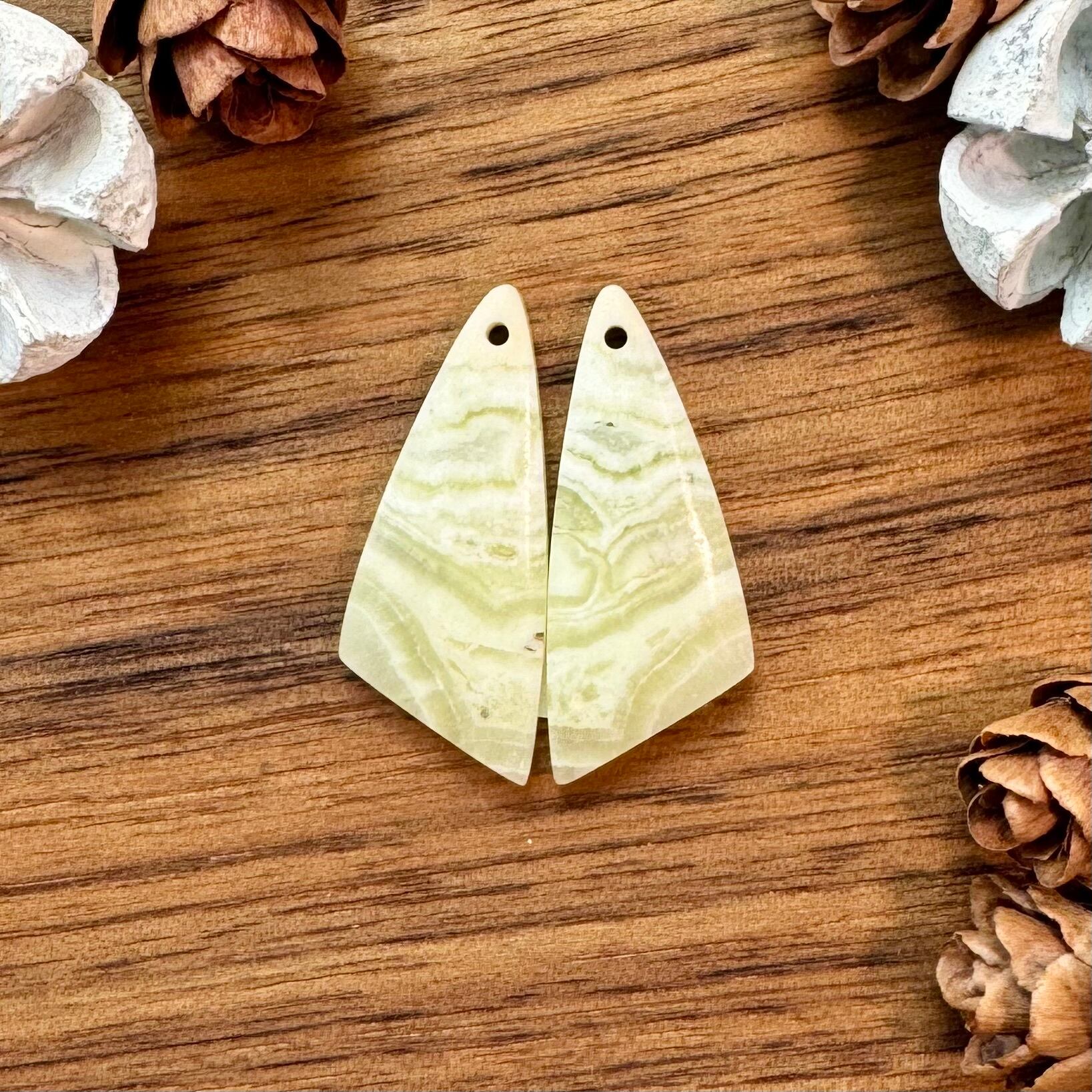 柔らかいレモン色を帯びたしホワイトカラーで波打つような層状や波紋状の模様のあるマットな質感の天然石です。