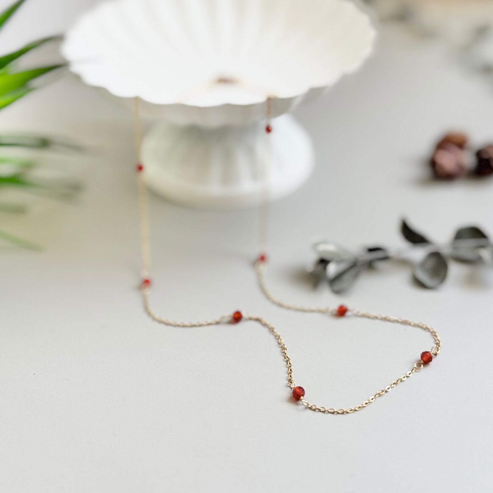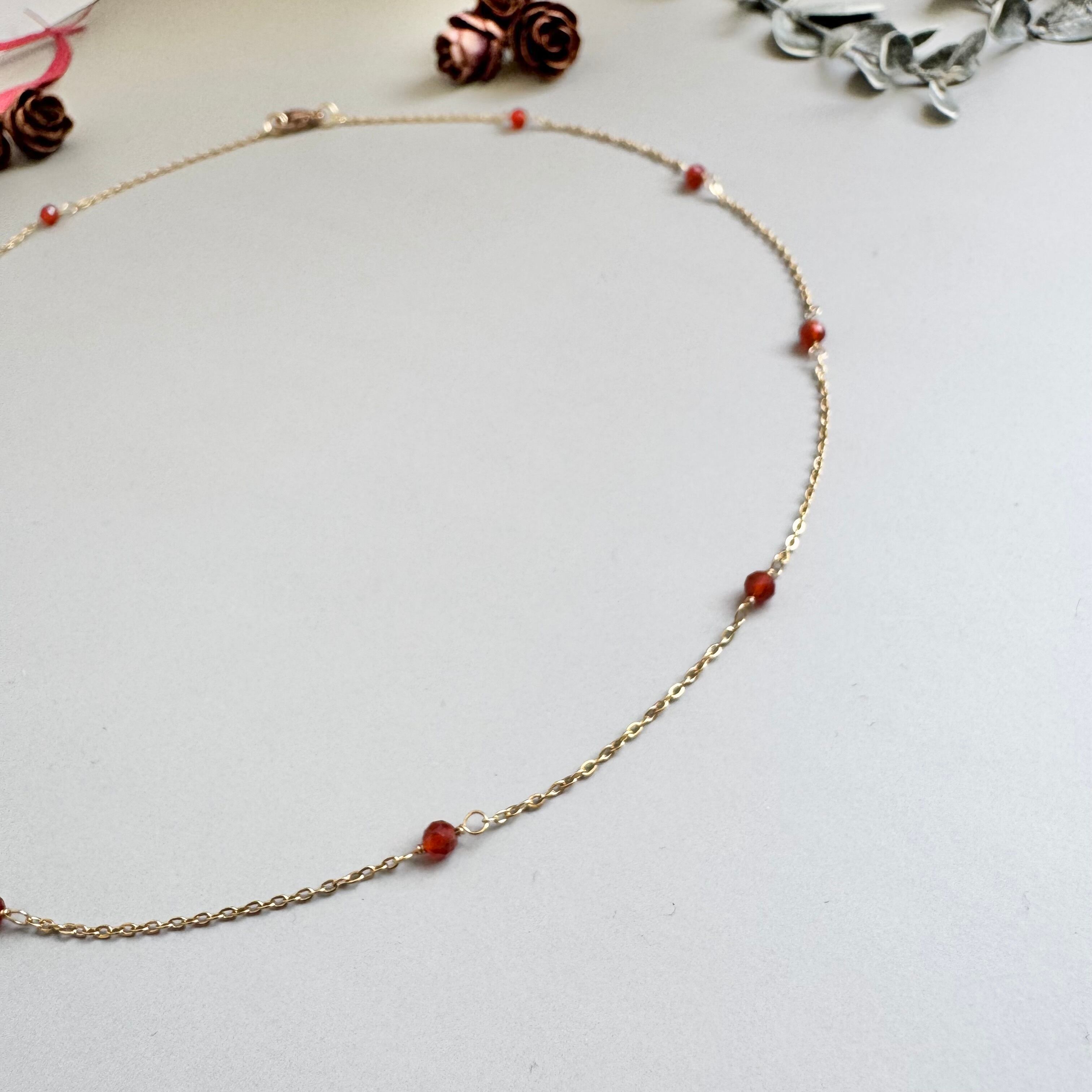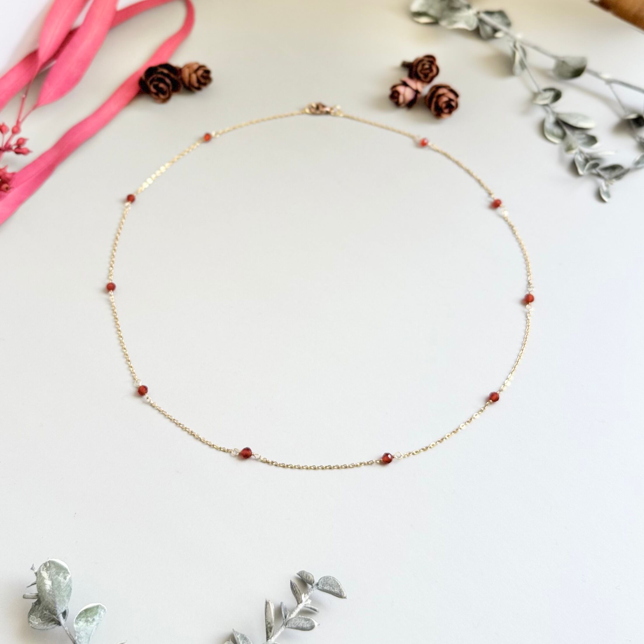 後ろ姿まで可愛い*ポイントステーションチェーンネックレス*ガーネット