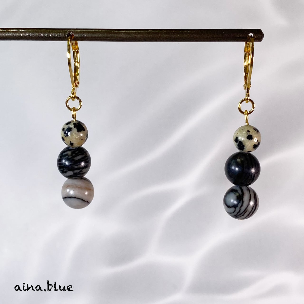 K18GP*ダルメシアン& ゼブラジャスパー*ピアス