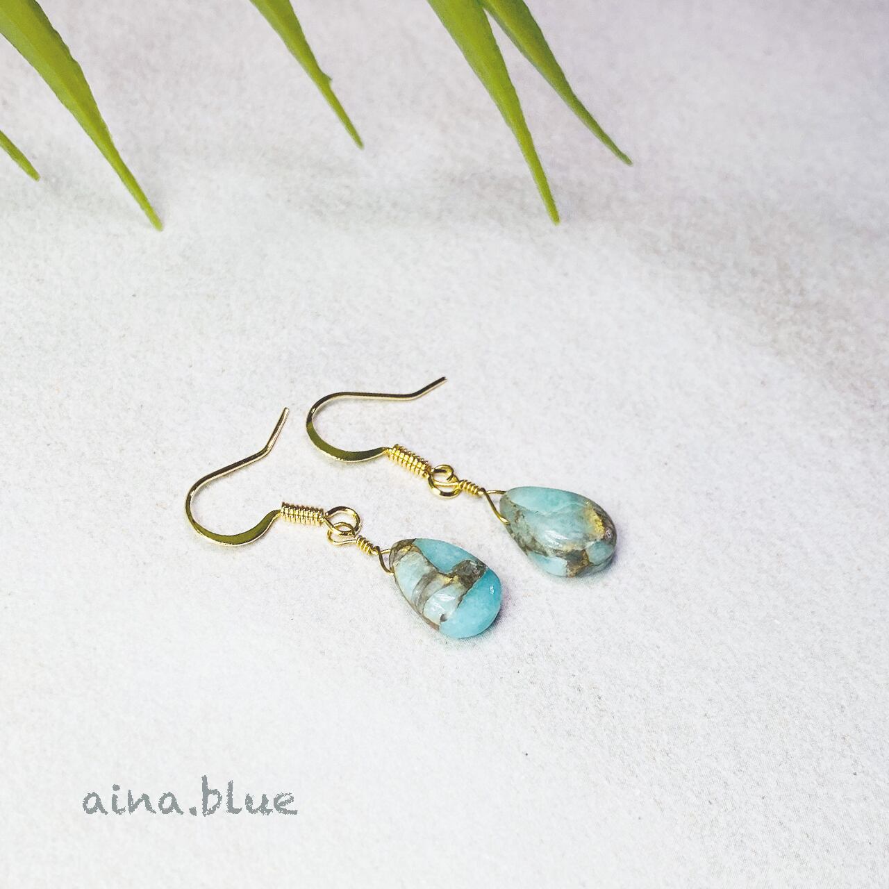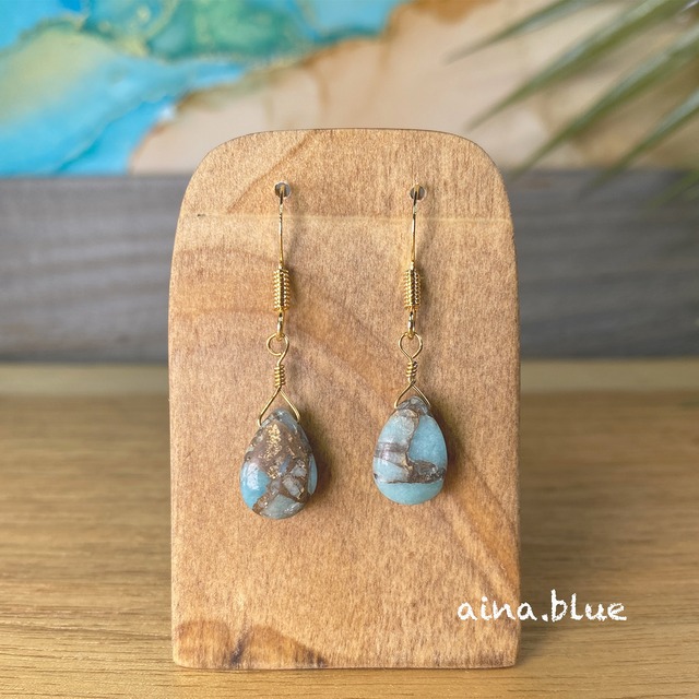 人気のブルーコッパー(カッパー)アマゾナイトのピアス