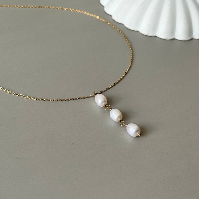 **パールの3連ネックレス_Three-Perl Drop*Necklace*