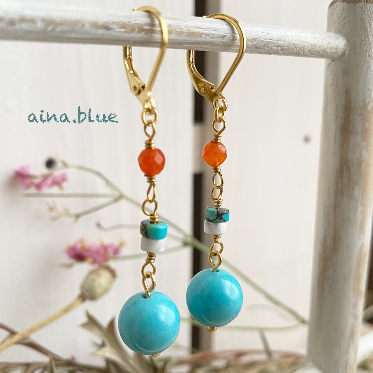 K18GP*オレンジジェード&ターコイズ&ハウライト*ピアス