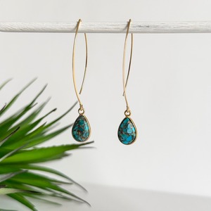 美しい青と銅色の絶妙なコントラストを楽しめるブルーコッパーターコイズを使用したロングピアスです。