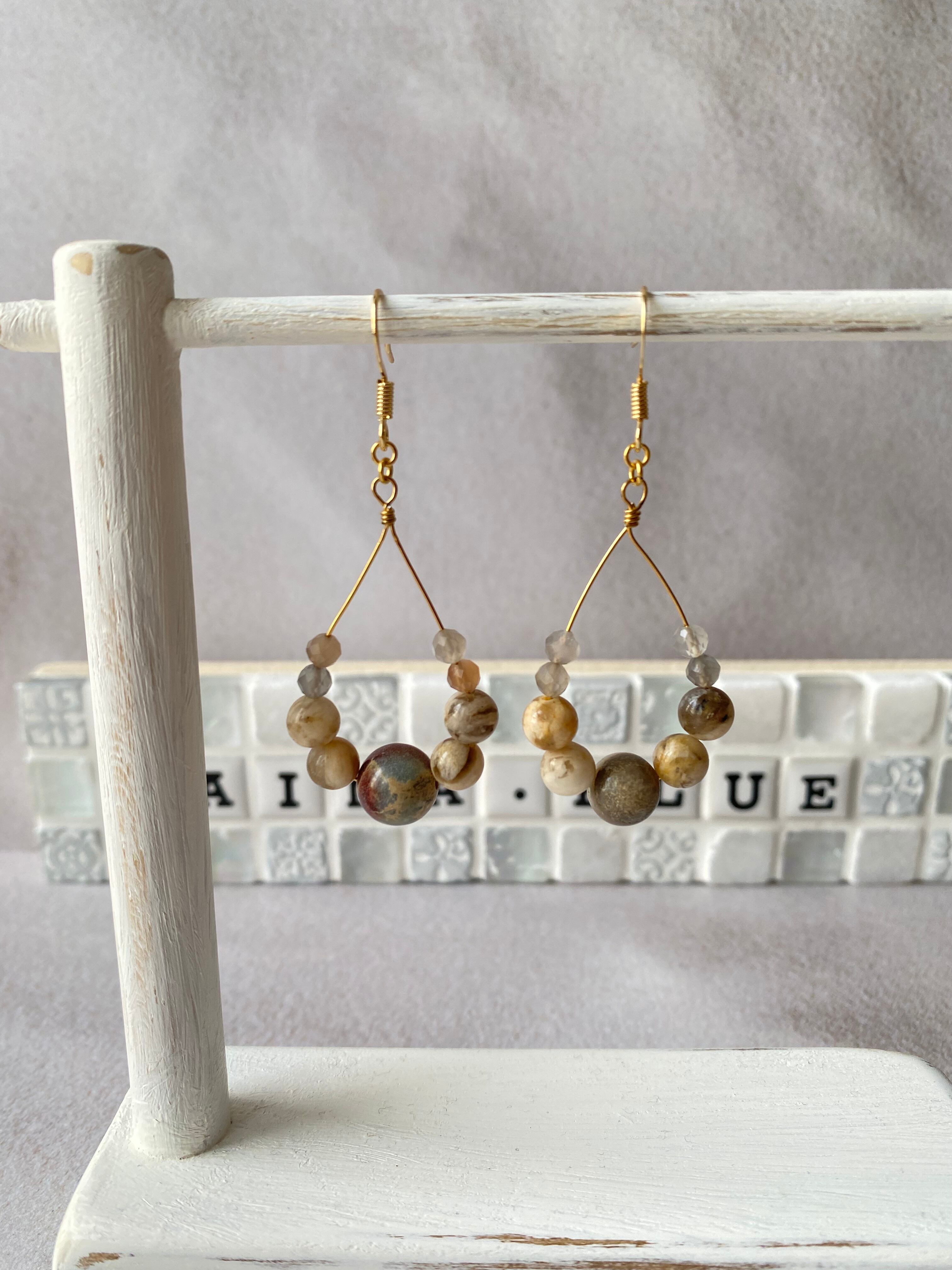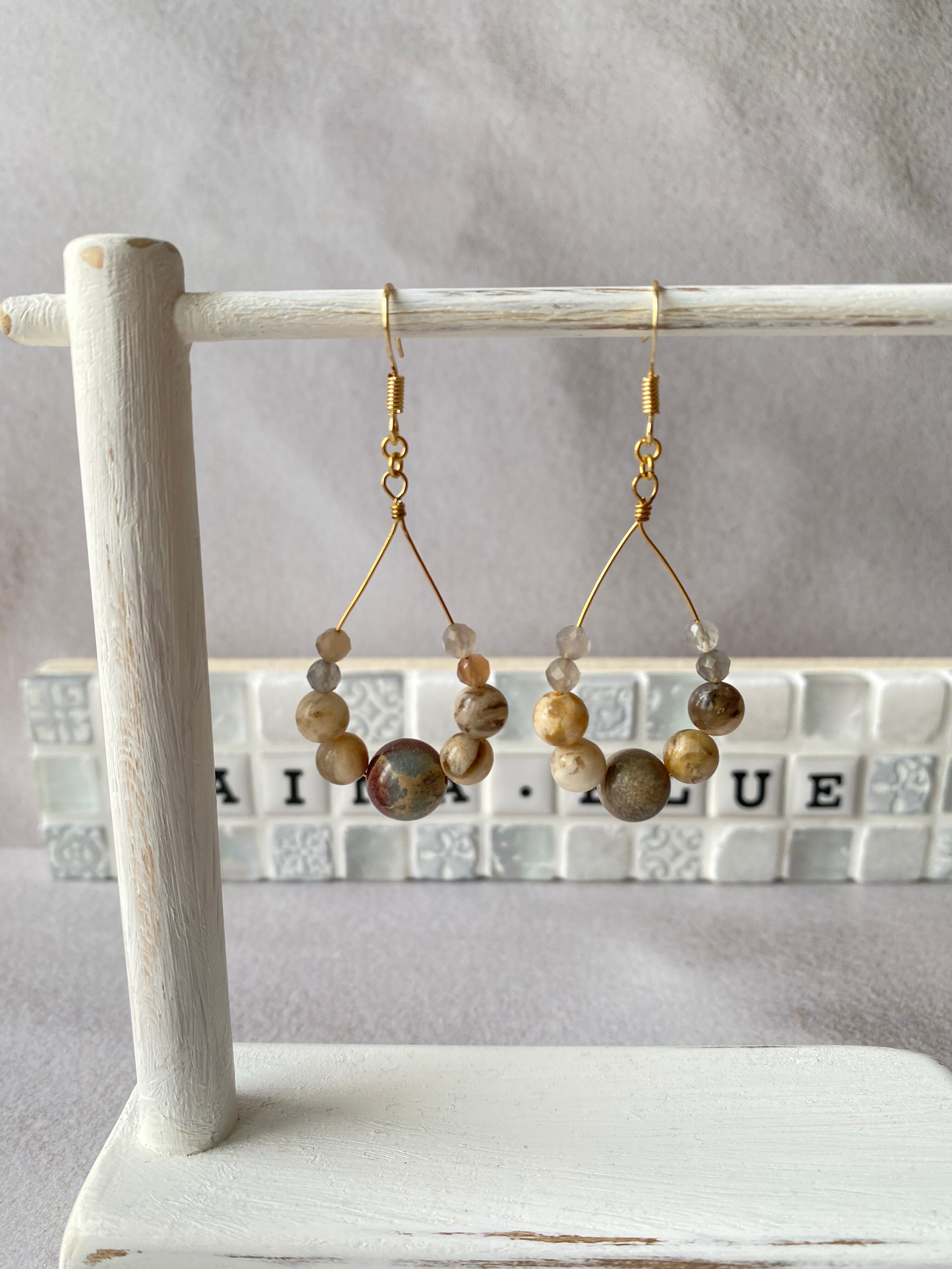 神秘的な色合いのインプレッションストーン1mm玉のドロップタイプのピアス