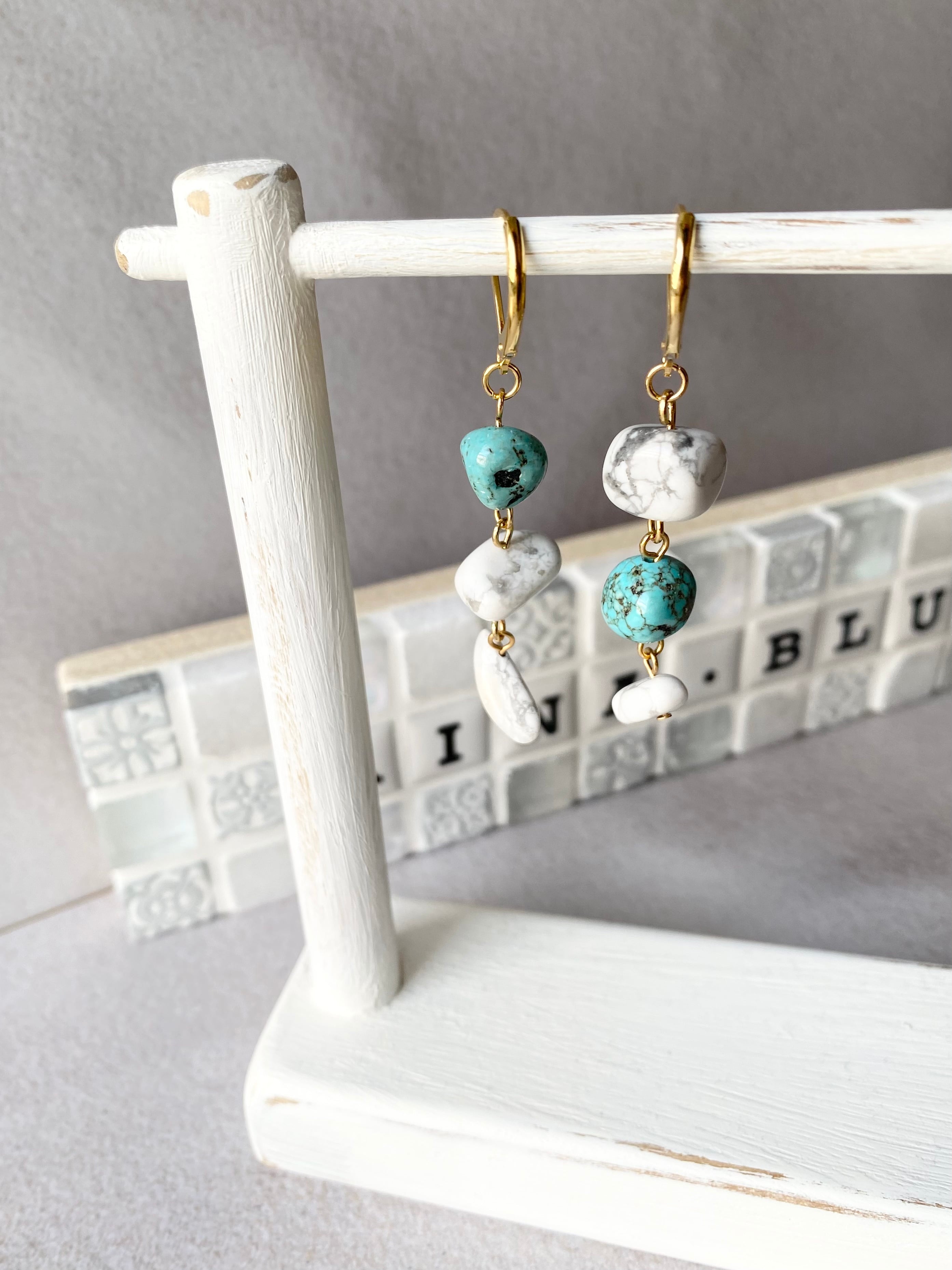 ハウライト&ターコイズ アシンメトリー*ピアス