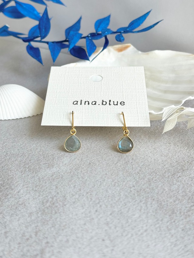 アフリカ産ラブラドライトは、透明度が高く美しいシラーが見られます。宝石質のルースを使用したピアス。