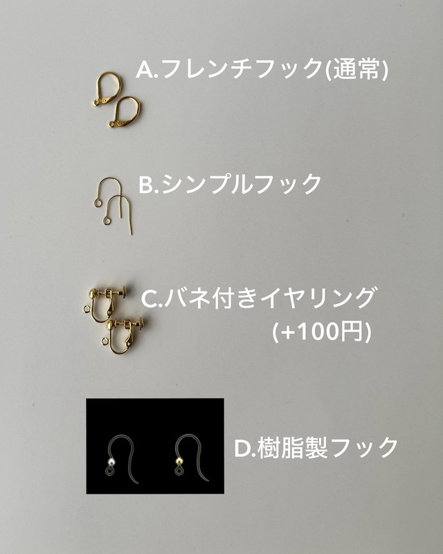 ピアスフックはオプションにて変更が可能です˖ ࣪⊹変更のご希望がない場合は、画像のフックでお作りします。