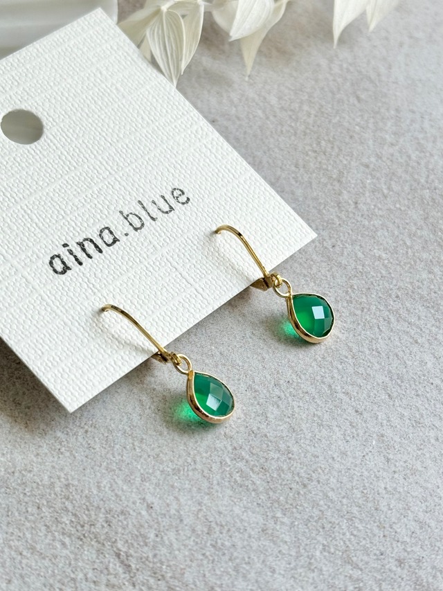 発色の良いグリーンオニキス(グリーンアゲート、グリーンカルセドニー)。透明のグリーンカラーは他の石にはない独特な色合い。今年とても人気があったお色でとても個性的です。